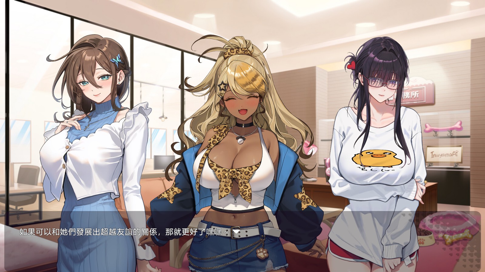 而游戏的目标便是一年时间内陪伴女主角们,在努力赚钱和经营频道之余,你也可以发挥身为经纪人的可靠魅力,慢慢走入三位女生的内心。