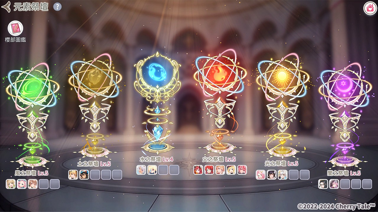 为了守护这片樱境大陆土地,六位元素之神降临,并将自身的力量注入祭坛之中,创造了六座神圣的祭坛。