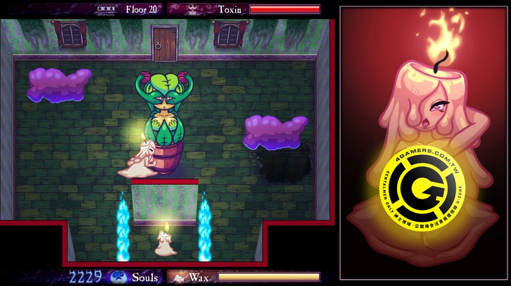 同时,本作还有蜡烛美人的私人房间,在里面能够观赏蜡烛美人与其他 BOSS 的 H 动图,大致上是为了偏好人外娘的绅士族群所製作。