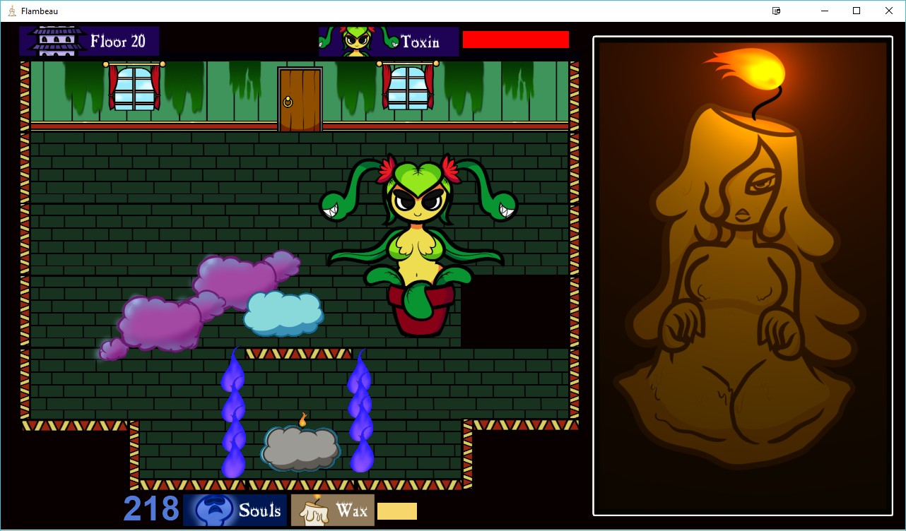《Flambeau》最早是 Shady Corner 在 2018 年在 Itch.io 推出的成人游戏,玩家需要操作蜡烛美人前进一座神秘的巫术高塔,击败一层又一层的敌人,包含企图吞噬蜡烛美人的 BOSS。