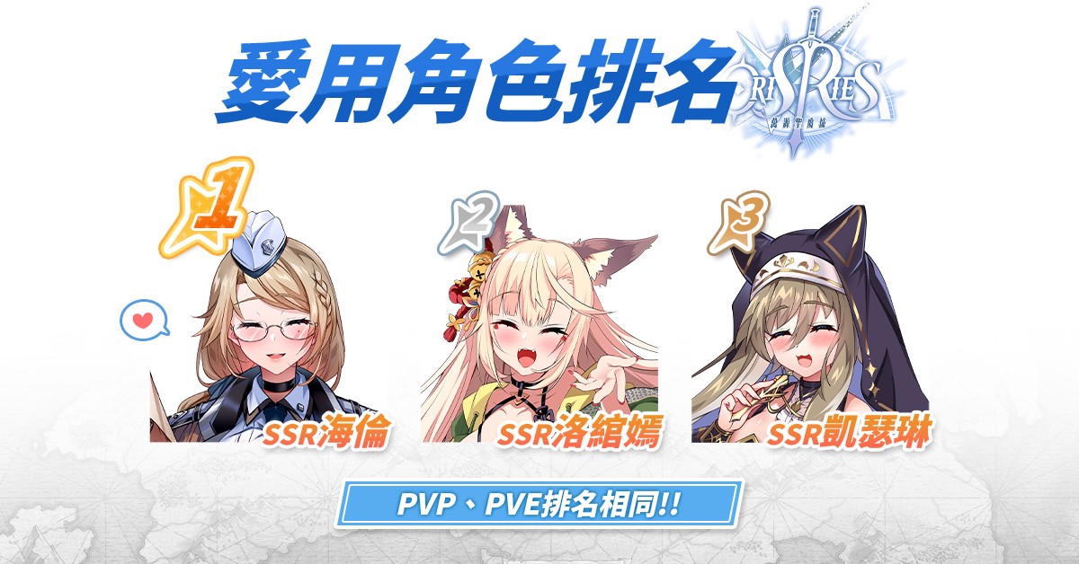 测活动期间,统计指挥官们爱用的 PVP 与 PVE 角色,玩家最值得信赖的副官海伦,萌萌兽耳娘洛绾嫣,还有治癒满分的兽人修女凯瑟琳包办排行榜前三名。