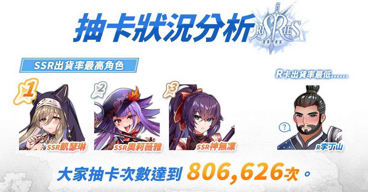 其中出货率最高的 SSR 角色前三名分别是:凯瑟琳、奥莉薇雅、神无凛,至于拥有高人气的 R 角色李丁山意外的是出货率最低的角色。