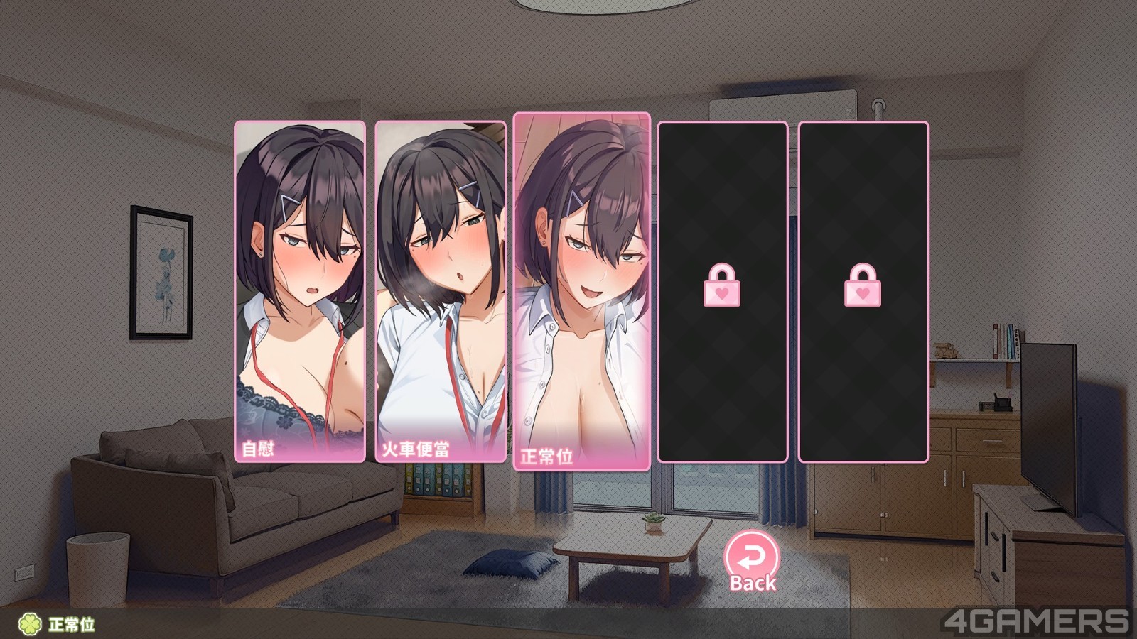 在本作中,当好感度达到并解锁第一个 H 事件后,玩家便可随时找女主角进行做爱,乍看之下体位似乎不多,但实际上每一个体位的享受度超乎许多绅士的预期。