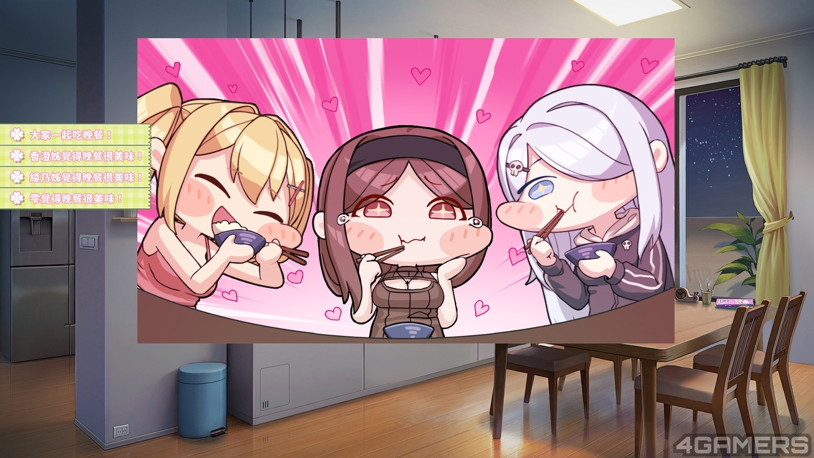 像是主角在家中清扫或洗澡,或是每天煮晚餐给三姐妹吃,许多事件突如其来的 Q 版图都非常可爱,同时也为日复一日的生活日常增加一些小变化。