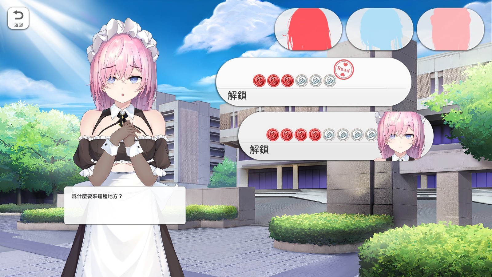 每天的白天关卡都能收集到各 1 枚红币与白币,代币则是能用来解锁游戏剧情事件,晚上关卡则是躲避女僕珂珂的贞操保卫战,玩家必须躲避追兵的情况下吃完所有游戏机。
