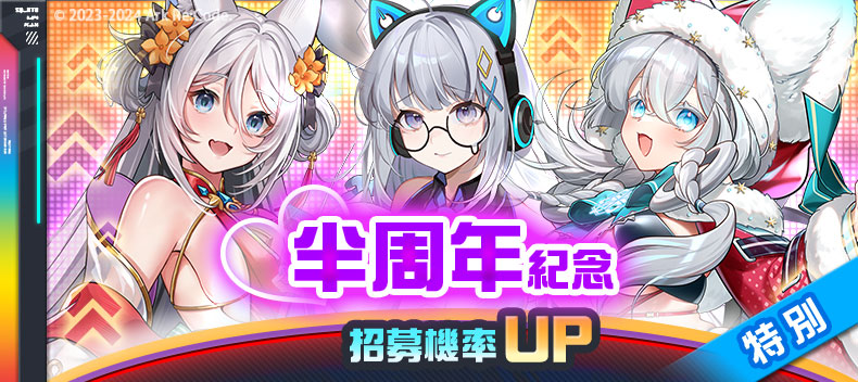 官方社群人气投票,依据票选前三名团员举行「半周年纪念招募」。特别招募可获得「半周年纪念代币」,并在「半周年纪念商店」兑换半周年纪念招募的团员和羁绊。