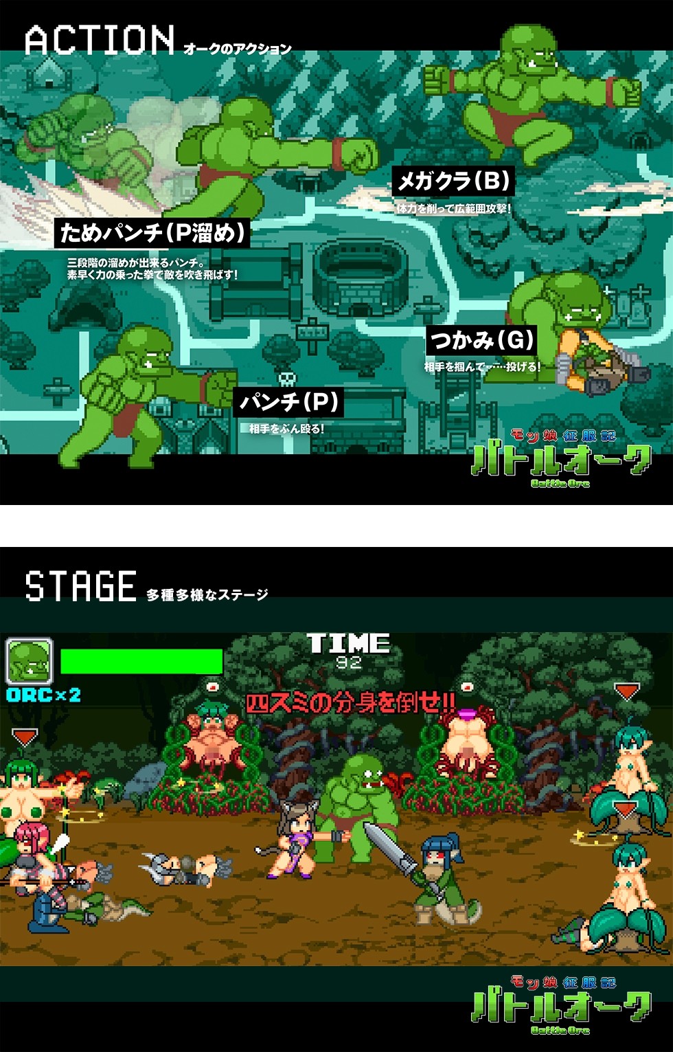 《魔物娘征服记 战斗半兽人》是百舌鸟畑社团在 2023 年于 DLsite 推出的「战斗 H」成人游戏,主打横向街机战斗玩法,玩家操作的是一位万中无一的强大半兽人,在奇幻世界里为延续种族的存续,独自挑战各种魔物娘的格斗作品。