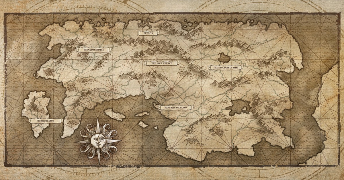出云,土地贫瘠,与大陆一水之隔,位在遥远海岛上的日落之国,他们信奉与圣教会不同,被称为「大日御神」的神祇,代代由神选传承的「巫女姬」作为领导者,因为锁国风气盛行的缘故,出云发展出了和大陆截然不同的,被称之为阴阳术的魔法体系。