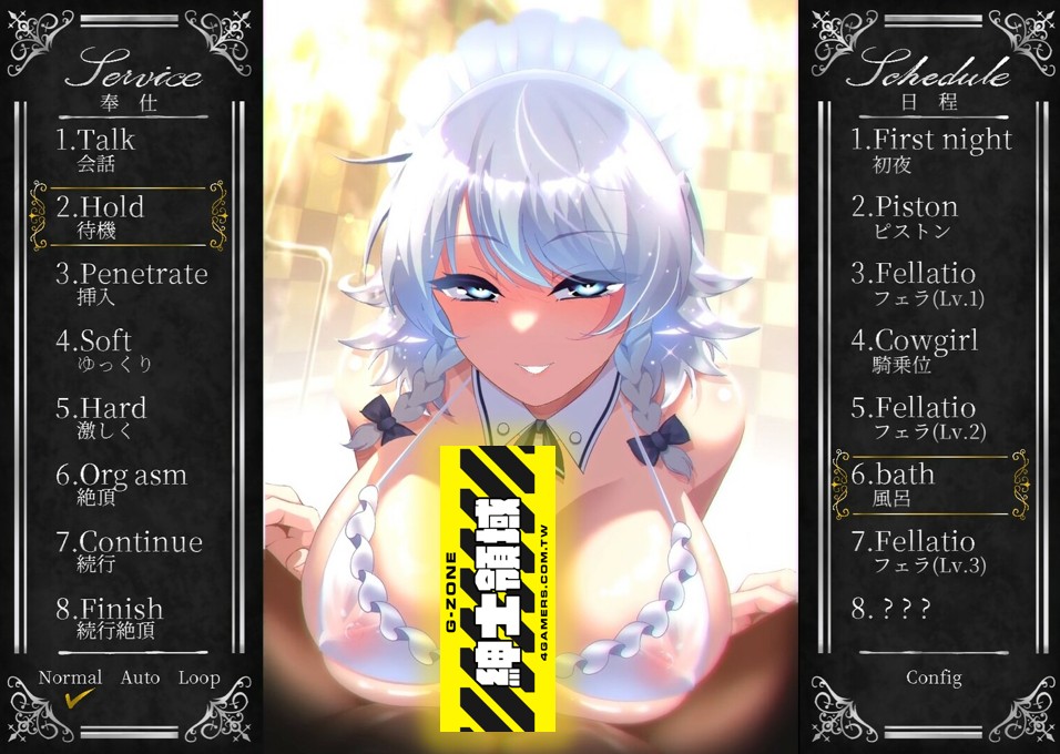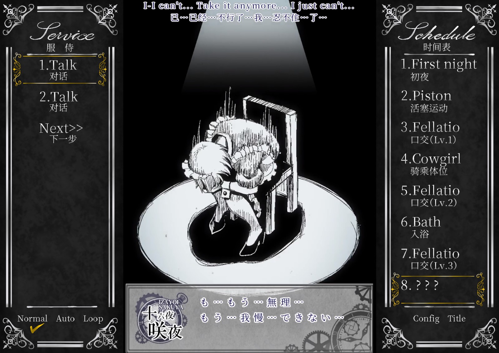 而游戏里很快就会进入成人福利,基本的爱抚前戏、口部与胸部搾汁、以及正戏的激情交流,同时作品也不完全都是一路打砲打到底,中间还有着领主与咲夜休息时的一些日常对话,交待了咲夜对领主大人的情感日渐增长。