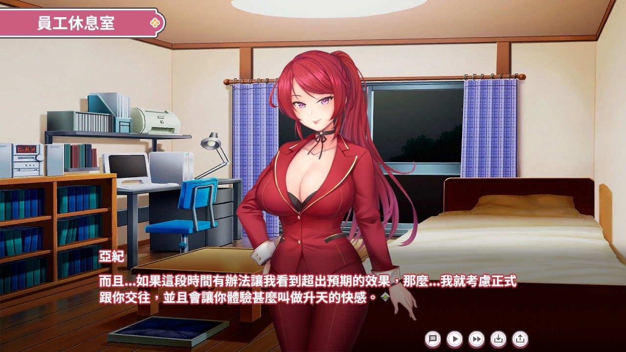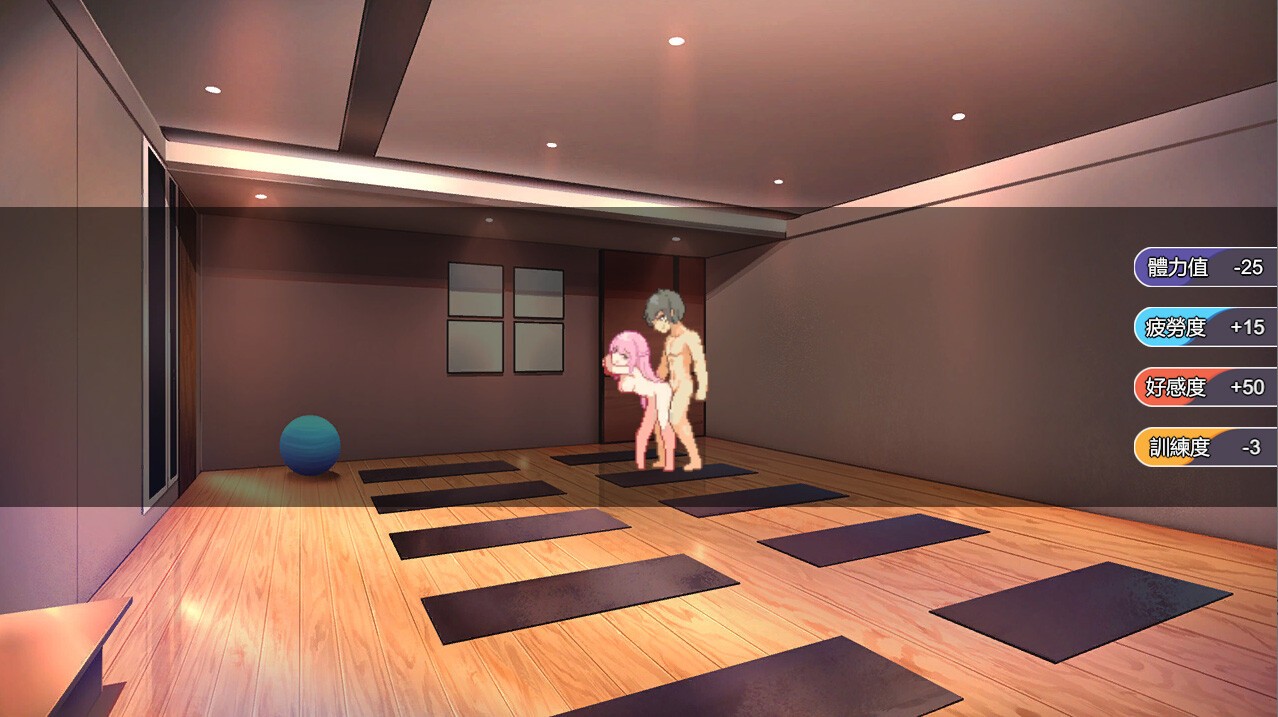 而互动方面则有训练、按摩、赠礼与 H,训练因应地点的不同会有迷你游戏,达成度高低会影响好感度获得,只要好感度每升级一次就能解锁特殊事件。