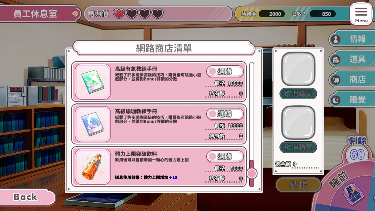 为了能够体验两个月后「什幺叫做升天」的快感,正义的你当仁不让接下了馆长一职,準备度过 60 天的健身房时光。