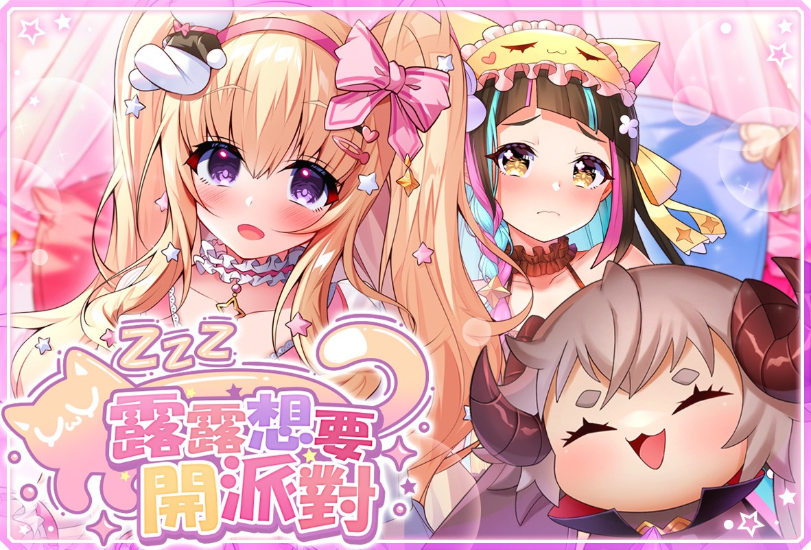 活动剧情讲述露露某天晚上突发奇想,想要在魔王城举办睡衣派对。为此,她进入了一年只有一次的勤劳露露模式,不只自己规划行程,还做了精美的邀请函,準备邀请朋友一起共襄盛举。