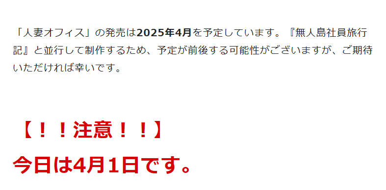 YASANIKI 强调,《隔壁座位的人妻小姐》的开发作业将与《无人岛社员旅行记》一同进行,预计在 2025 年 4 月 1 日发售。