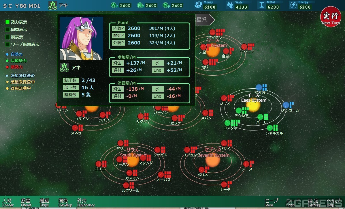 其中,智将阿摩斯投奔了「亚奇」(你可以把「亚奇」想像成三国志中的刘备),而继承地球圈的大王子「亚古迪巴」则是开始对外讨伐叛贼,直到宇宙历 90 年天才军师「拉」统合了各方势力北伐地球圈。
