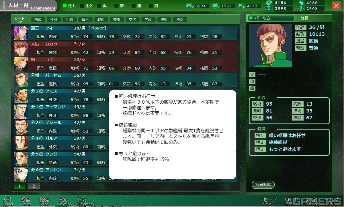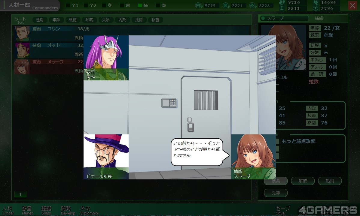 只要你疼爱特定角色够多次,女性角色就能学到各种技能或是增加基础数值,而一般的妾只要生下儿女就会被当成王族,可以派去做内政或是军事,都非常有用。