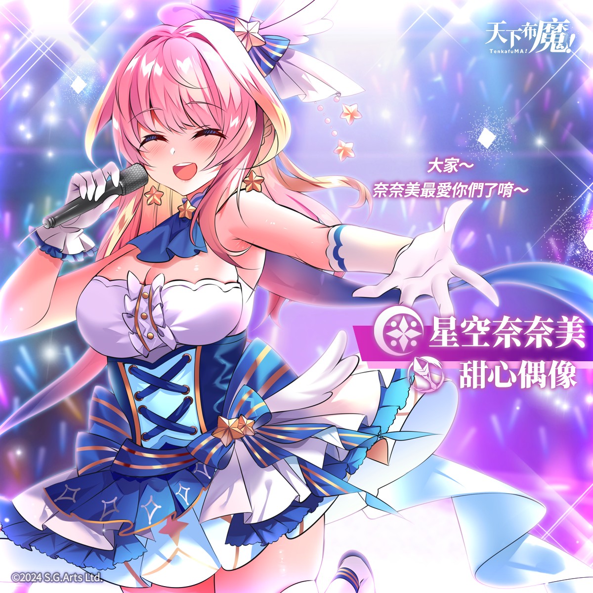 本次活动专属卡池开放至 2 月 28 日,限时取得三位限定 SSR 角色 「甜心偶像 星空奈奈美」、「闪耀歌姬 黑白诺艾莉」与「偶像经纪人 梅丝米奈雅」。