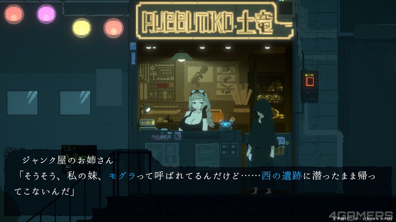 除了对话探索,游戏也有简单的战斗设计,击败机甲蟹可获得金钱购买道具或装备,甚至也有 BOSS 战,可说是具备基本 RPG 所有要素。