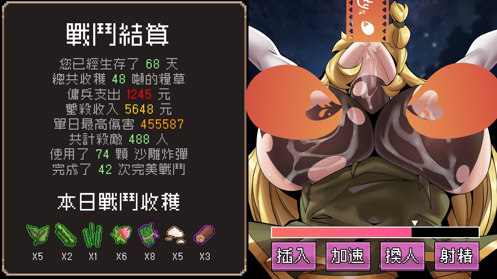 而绅士福利方面则是主打战败凌辱,而结算画面似乎也有成人福利画面,根据官方资讯,本作共有 28 张全动态精美 CG,其中也有动态图视觉。