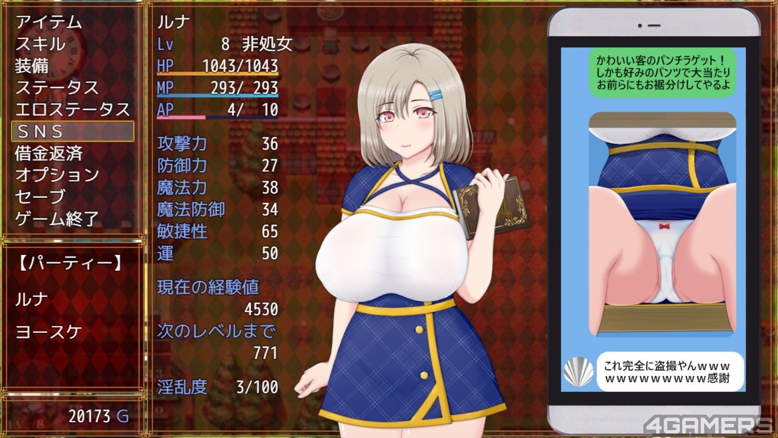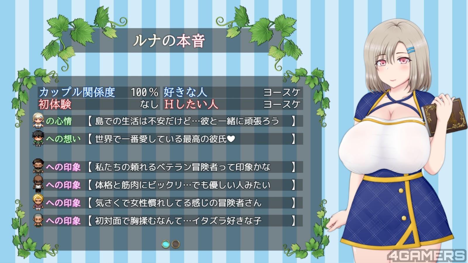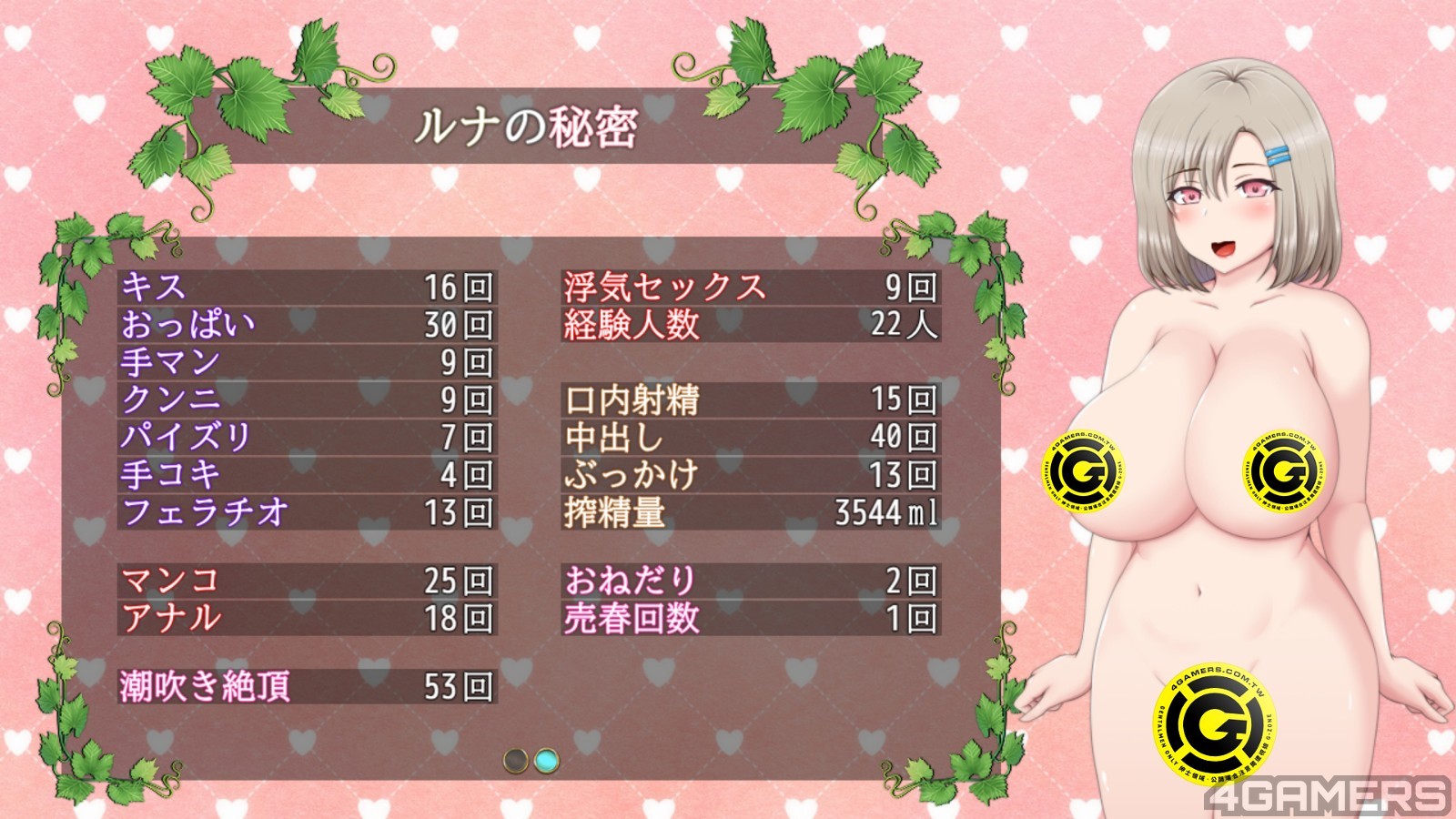 本作也具有露娜的心声与 H 数值的纪录,供玩家好好欣赏自己是怎幺帮渣男们搞上露娜的。