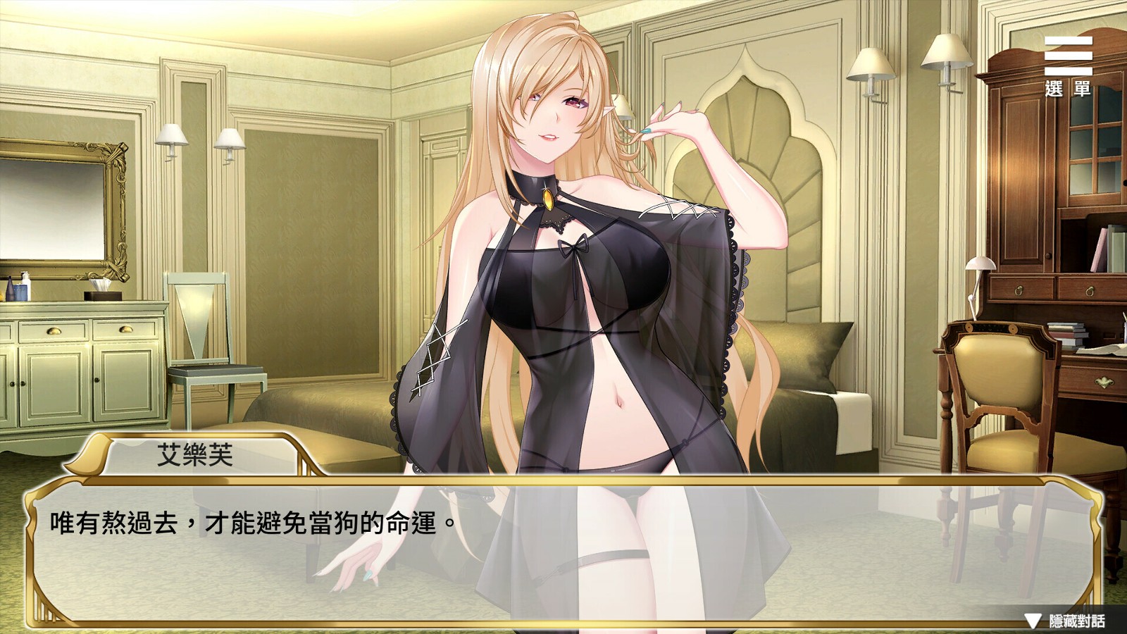 《精灵女上司的训狗术》上司调教题材推理剧情向游戏,世界观背景建立在一个女尊男卑的世界,女人是上帝的造物,男性是由发情公狗进化而来的劣畜,男主角身为心理学家,为谋求改变自身的地位,最终成功进入了世界第一企业——帝女集团。