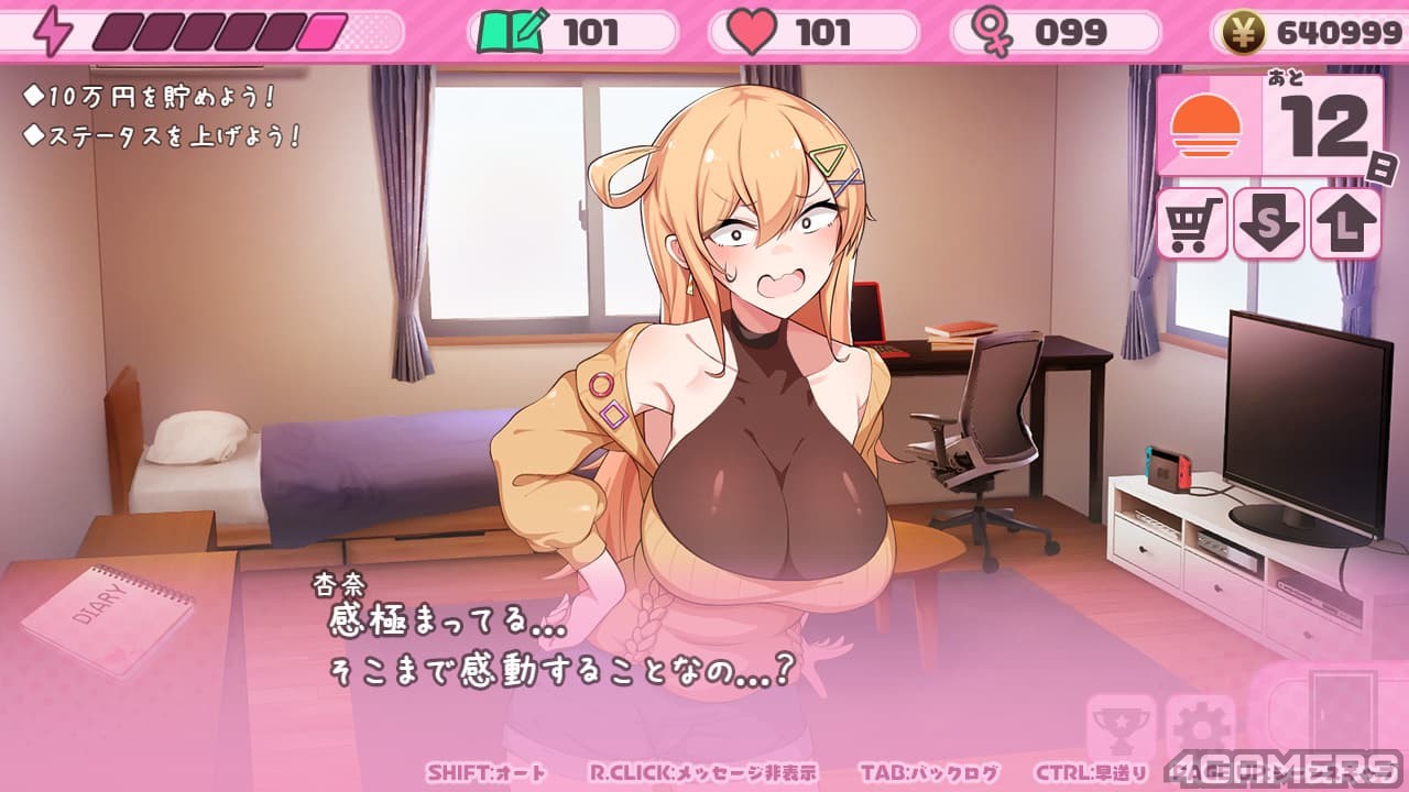 本作没有一键开启 CG 功能,所以请务必好好和杏奈培养感情,要是有些 CG 不知道如何解锁游戏里也会提示达成条件,整体难度不高。