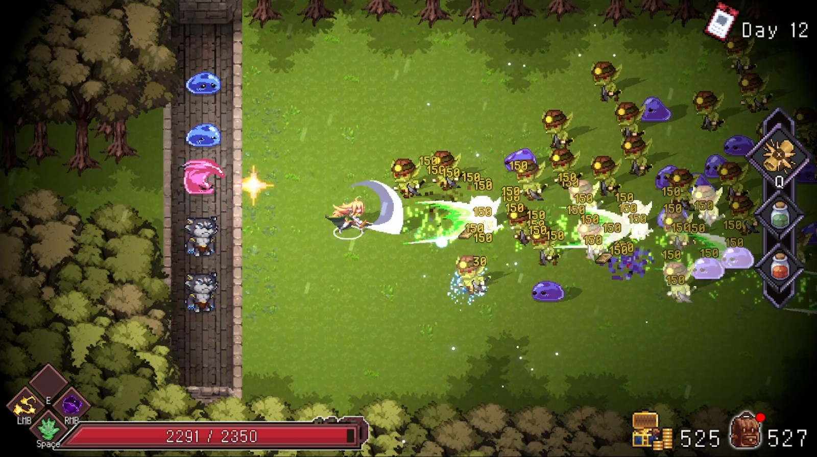 游戏的玩法主要分为白天经营养成,每日傍晚入夜后就会展开战斗,与《末代君主》方式类似,入夜敌方进攻越兇猛。