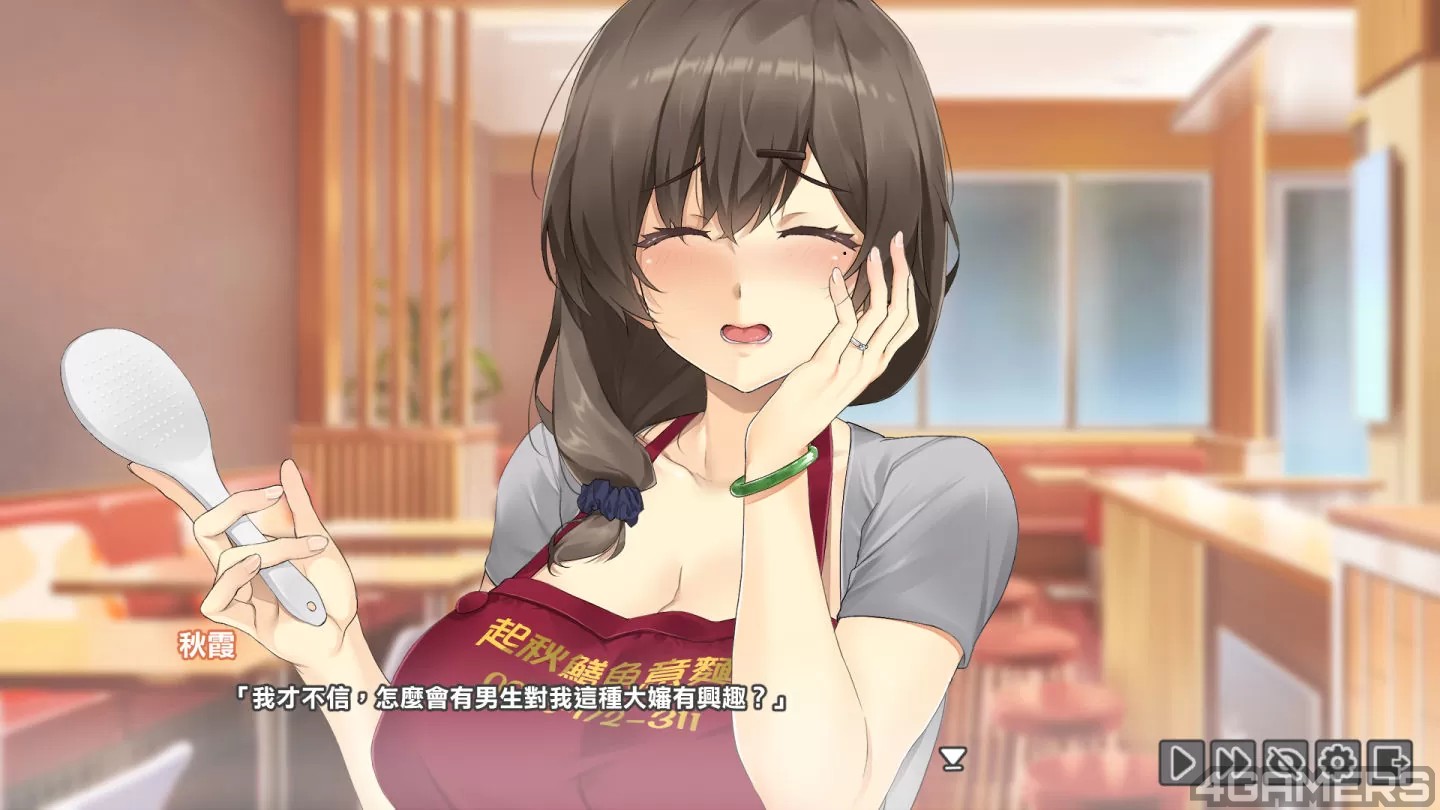 而最受到玩家热烈讨论的,则是年上巨乳瞇瞇眼属性、温柔贤淑又有点傻气、会特别提供学生白饭吃到饱的热炒店老闆娘秋霞。
