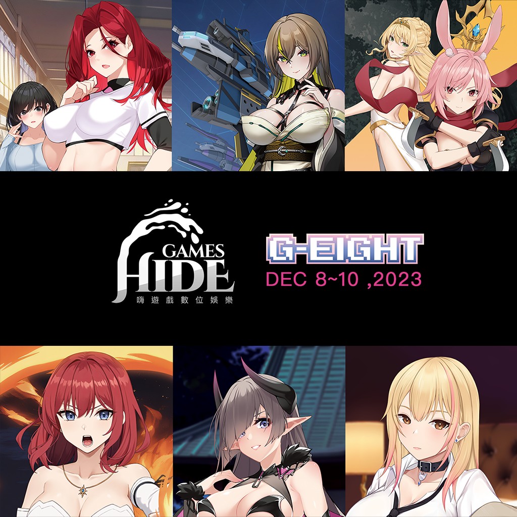 台湾团队嗨游戏数位工坊(Hide Games)将于 2023 G-EIGHT 电玩展开放《地牢脱出 3》与《魅惑之翼》两款游戏的现场试玩,另外也将展出尚未曝光的游戏《不做爱就无法离开的房间》和《节奏封淫》,以及明年即将上市的《淫慾健身房》《性爱除魔》等 6 部作品。