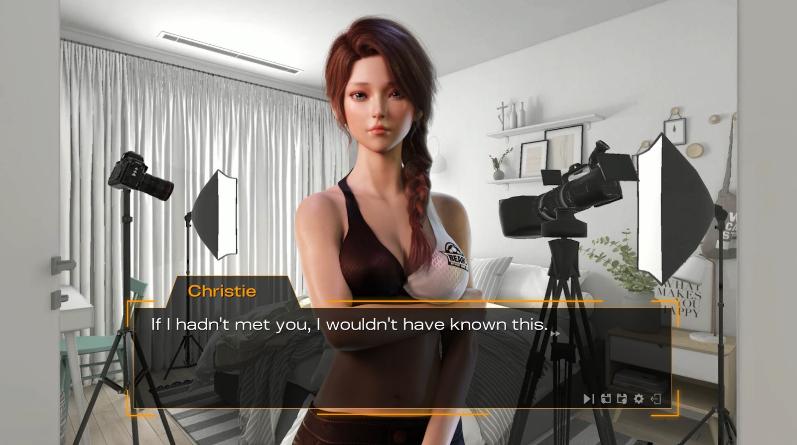 在摄影棚的布置背景里,你能切换三种不同的角度来观赏 3D 动画,并用滑鼠点击来加速角色动作,还能解锁不同的姿势与角度,不过并未包含事后射出的画面是为可惜之处。