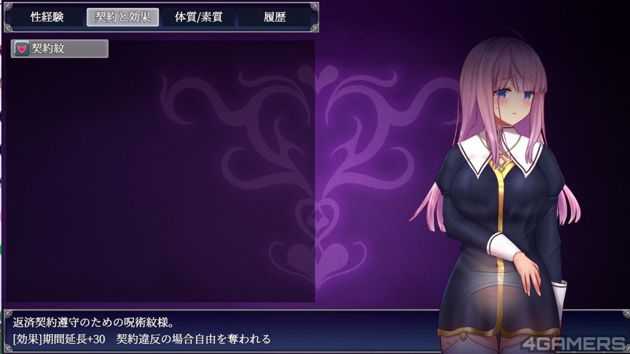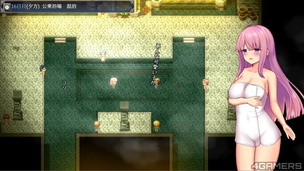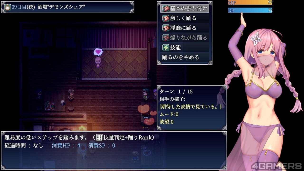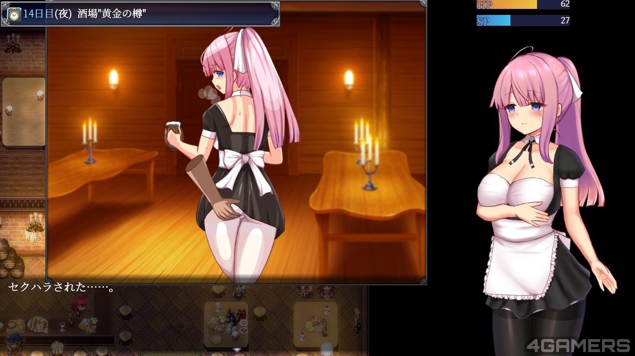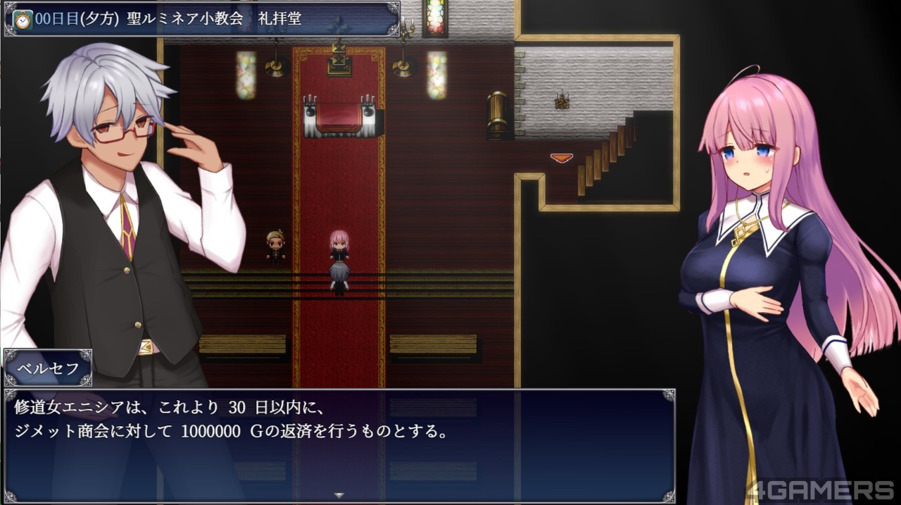 当然,修女赚钱的方法诚如绅士快乐的想像一般,玩家可在每天 4 次的行动时段进行冒险或工作赚钱,并触法各种性方面的刺激,逐渐降低自己的「圣性」,同时也有堕落到地下社会卖身赚钱的各种 Play。