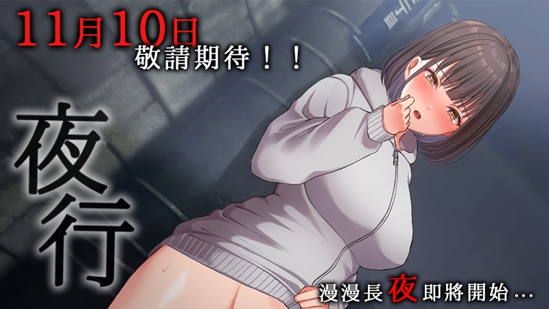 发行商 072Project 今(17)日宣布,由日本社团 SUPERBAD(スーパーバッド)开发、DLsite 销量超过 15,000 份的 JK 露出系成人游戏《夜行》(夜歩き),预计于 11 月 10 日在 Steam 上发售。