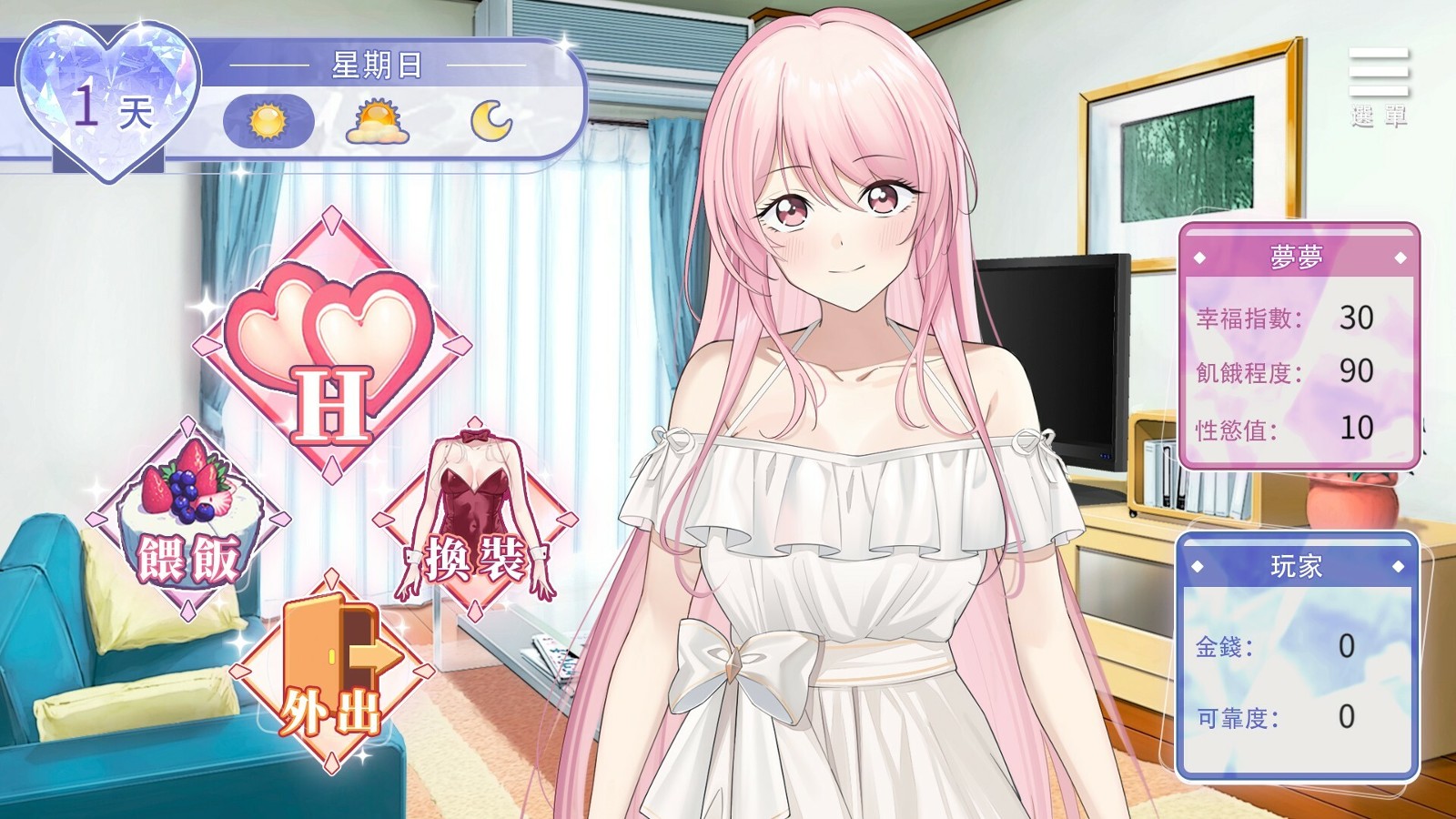 每一个选择都会影响到主角与梦梦的亲密度,同时也会影响到【幸福指数】和【服从性】,这些都将是最终结局分歧的变因。