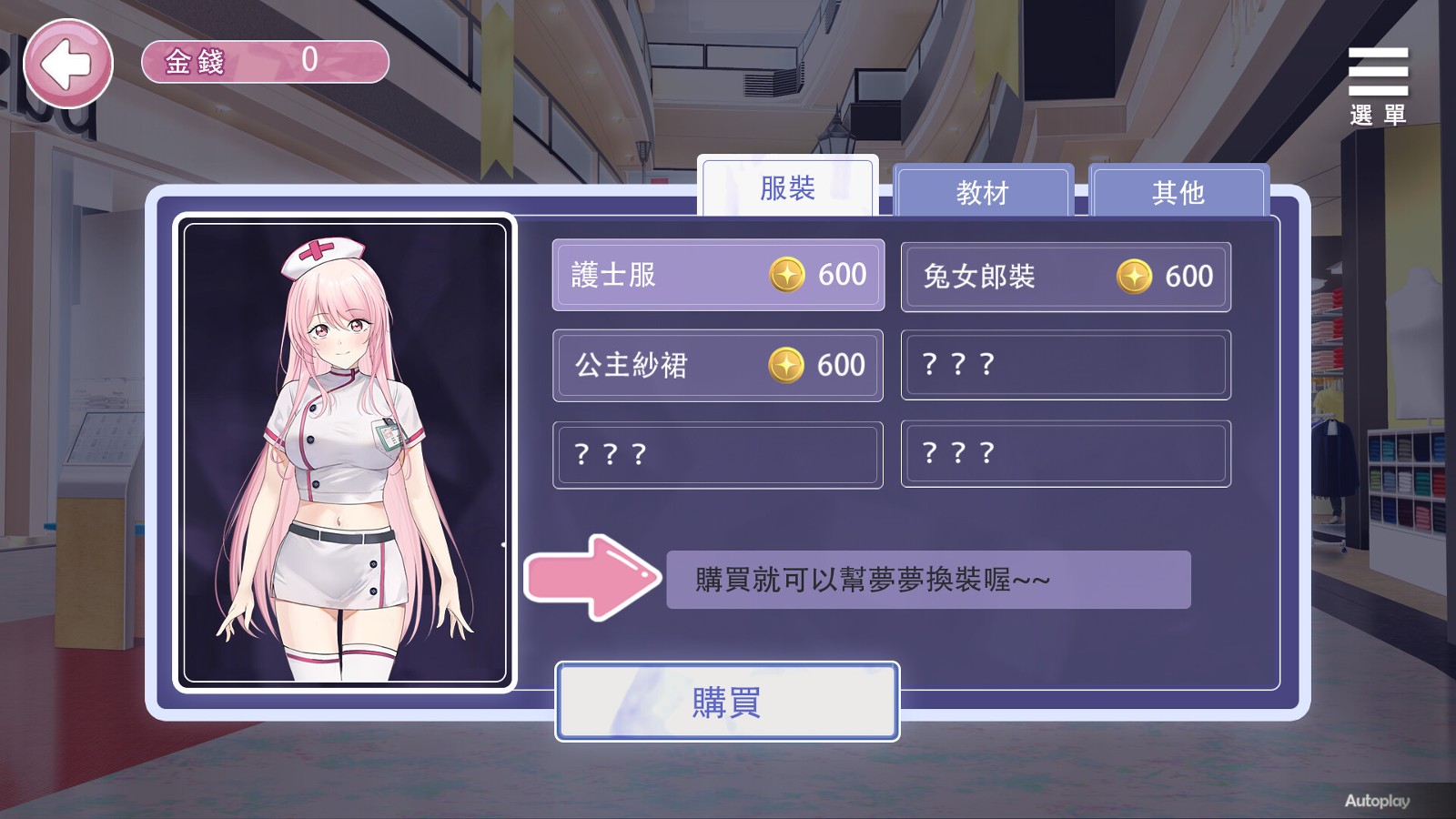 根据截图,游戏中提供梦梦基本的换装系统,同时也有不同的结局事件等待玩家挖掘,究竟情趣娃娃实际变成人对主角是福是祸,全看故事选择的走向了。
