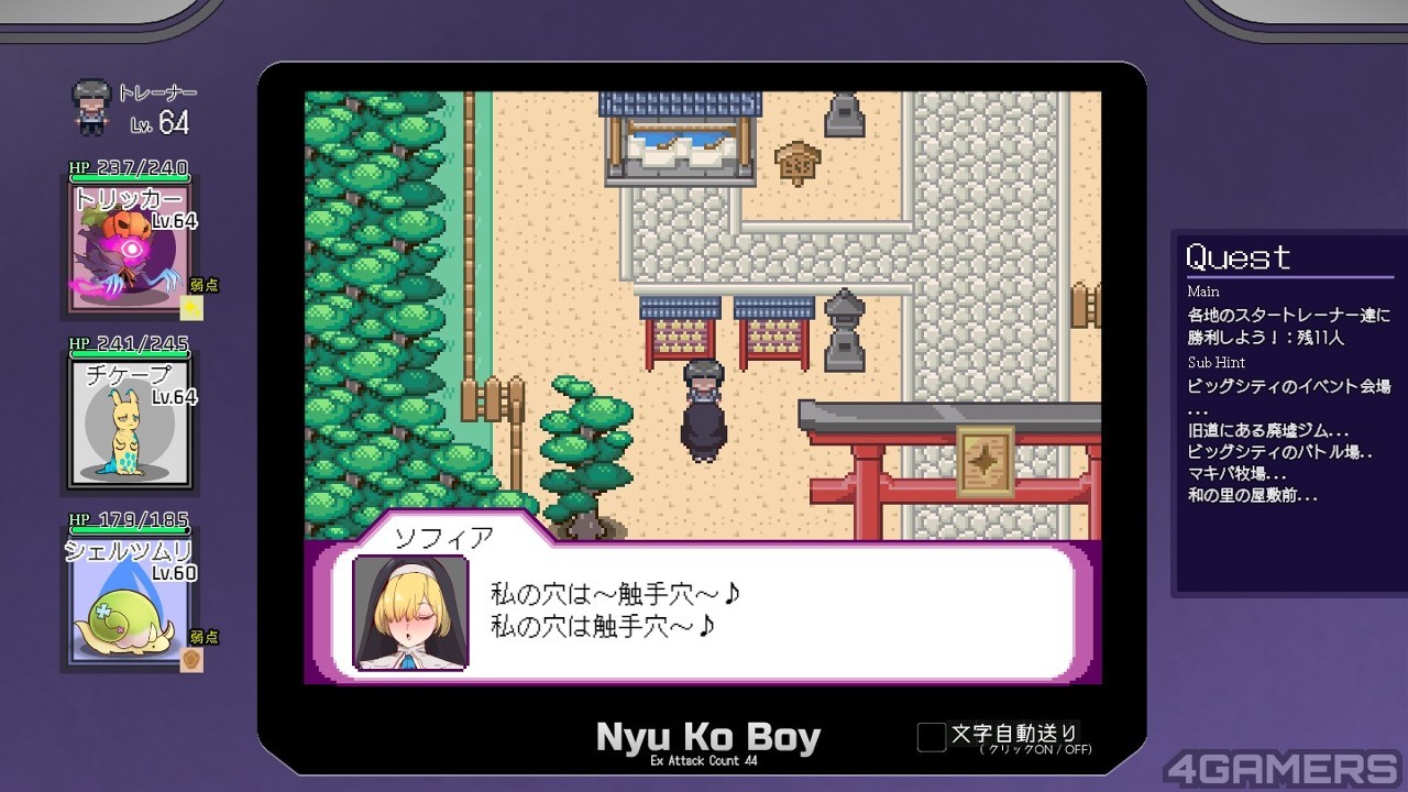 而本作居然有着高达 60 位以上的女性 NPC,多到除了亚里梦图鉴之外,「砲友」们也需要另外开一个图鉴,游戏还会贴心的告诉你在哪边可以找到这些女性训练师。(虽然很多人的人设都能从这间社团的前作找到就是了)