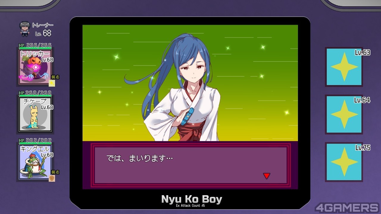 本作比较搞笑的一点是所有战斗 BGM 与 UI 都明显致敬宝可梦系列,只不过亚里梦的等级会受限于玩家自身的等级,所以无法靠纯粹练功来提升亚里梦的等级,玩家必须要主动去挑战各地的训练家,才能提升玩家等级上限。
