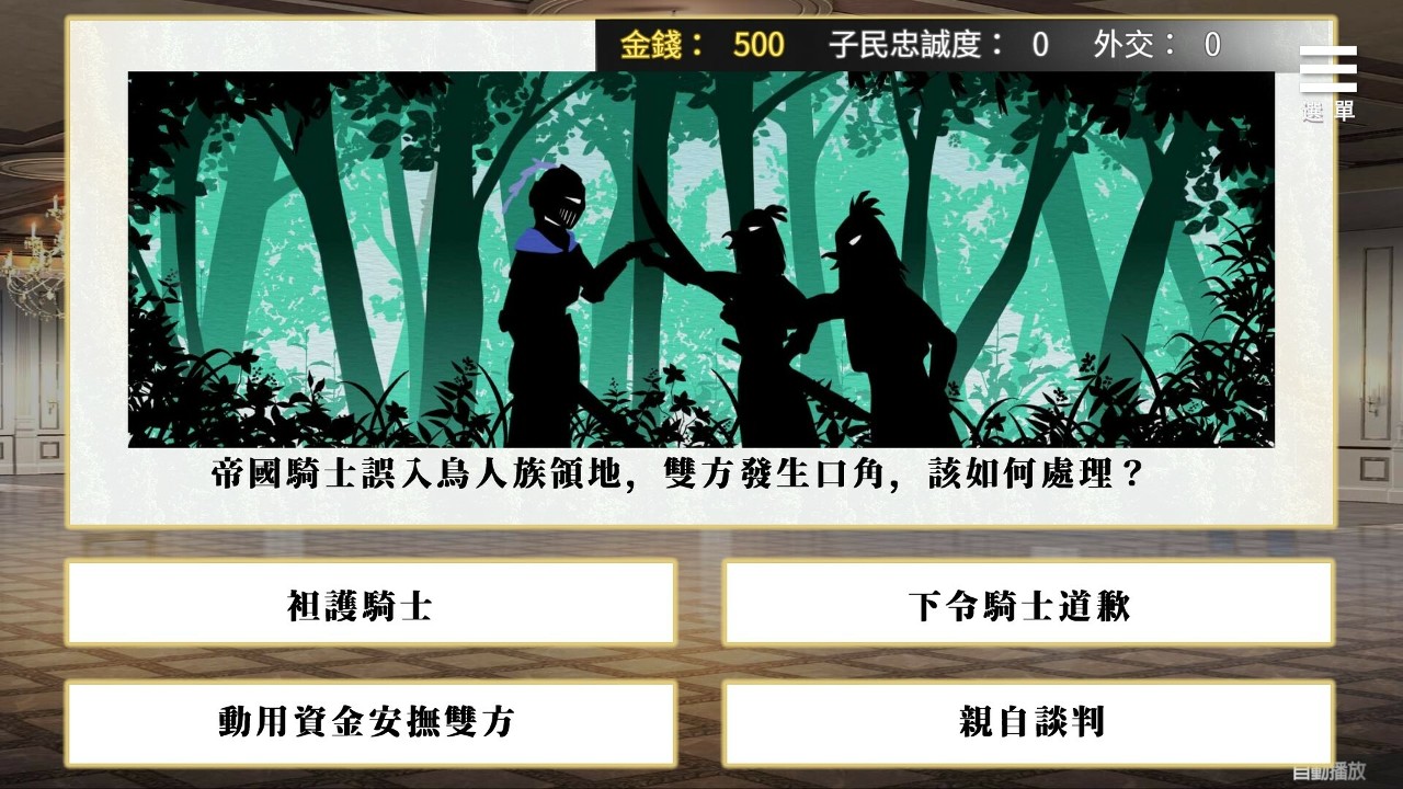 而游戏每 5 天会有解决「政事」的机制,按照目前的游戏截图来看,会以选择题让玩家为国家下决策。