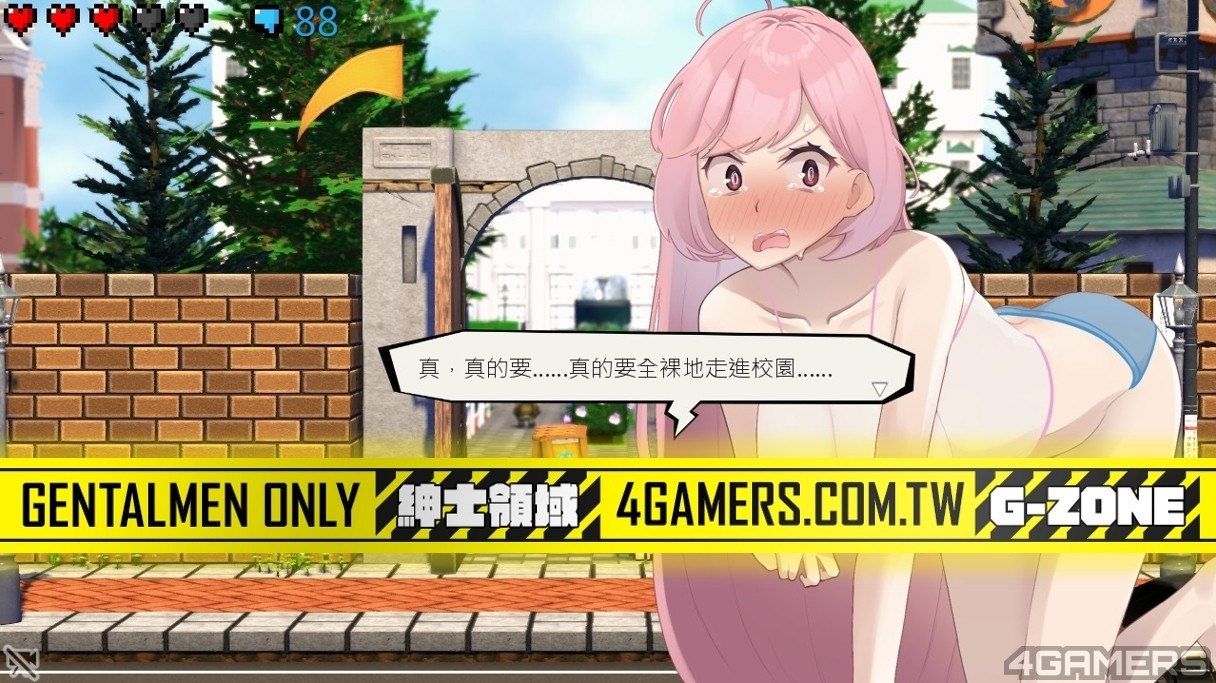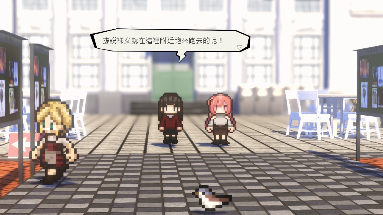 然而,对喜爱野外露出题材的绅士来说,游戏本身的内容加分超过了镜头带来的不便。是的,《全裸徘徊的女子大学生》重点是透过有点荒谬但却又有些认真的虚构幽默情节,展现了绅士们脑内对于野外露出的情境模拟。