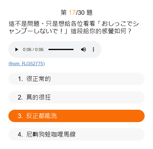 这 30 道题目中,有着最一般的日文填空翻译,也有 ASMR 声音的翻译,每一道题目官方都附上了作品连结,让有兴趣的绅士循线上车。