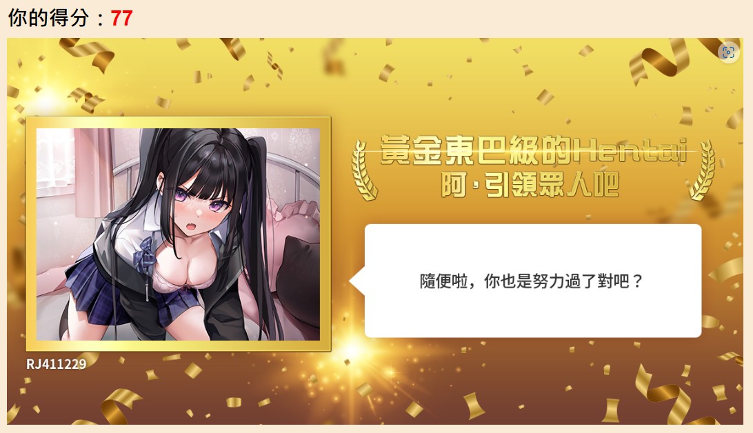 想测试自己变态力的绅士,可在问卷网页关闭前进行测试:Hentai Test (dl-tongren.com)