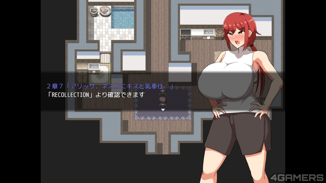 虽然游戏中因为是採用弟弟视角,所以不会直接演出完整 H 事件给玩家看,不过玩家可以在事后从游戏起始选单中的「Recollection」回想功能中一口气看完整条剧情链,让色情浓度完全浓缩在一起。