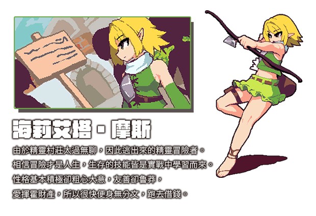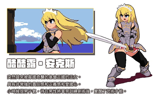 除了王女之外,游戏还有女精灵海莉艾落、女忍者藏内樱花、女法师路易丝、女恶魔艾妮丝可供选择。