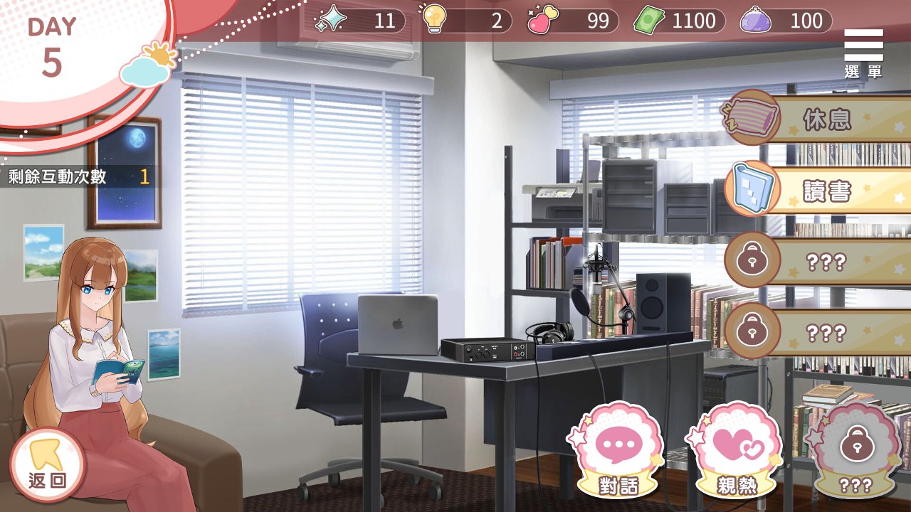 游戏的进行方式就和常见的养成系统一般,玩家每日有四个时段,可选择家中各个房间探索、行动,以及寻找慧晰与她互动。