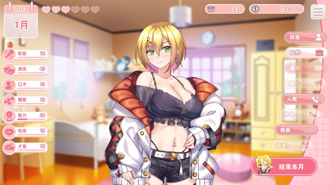 本作在通关上需要至少二周目的过程才能体验到全剧情,在培养偶像的时间管理玩法之外,玩家也能享受调教女主角成为床上狂野女神的乐趣。