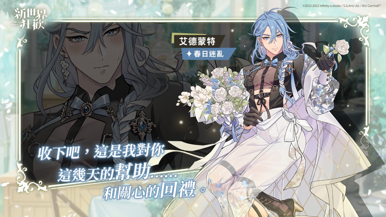 成人 BL 手机游戏《新世界狂欢》迎接上市一週年,今(23)日宣布展开限定活动「春林狂欢宴」,「艾德蒙特」和「玖夜」两位人气角色换上 ★SSR 限定装扮,此外还同步新增双人特殊对话系统!