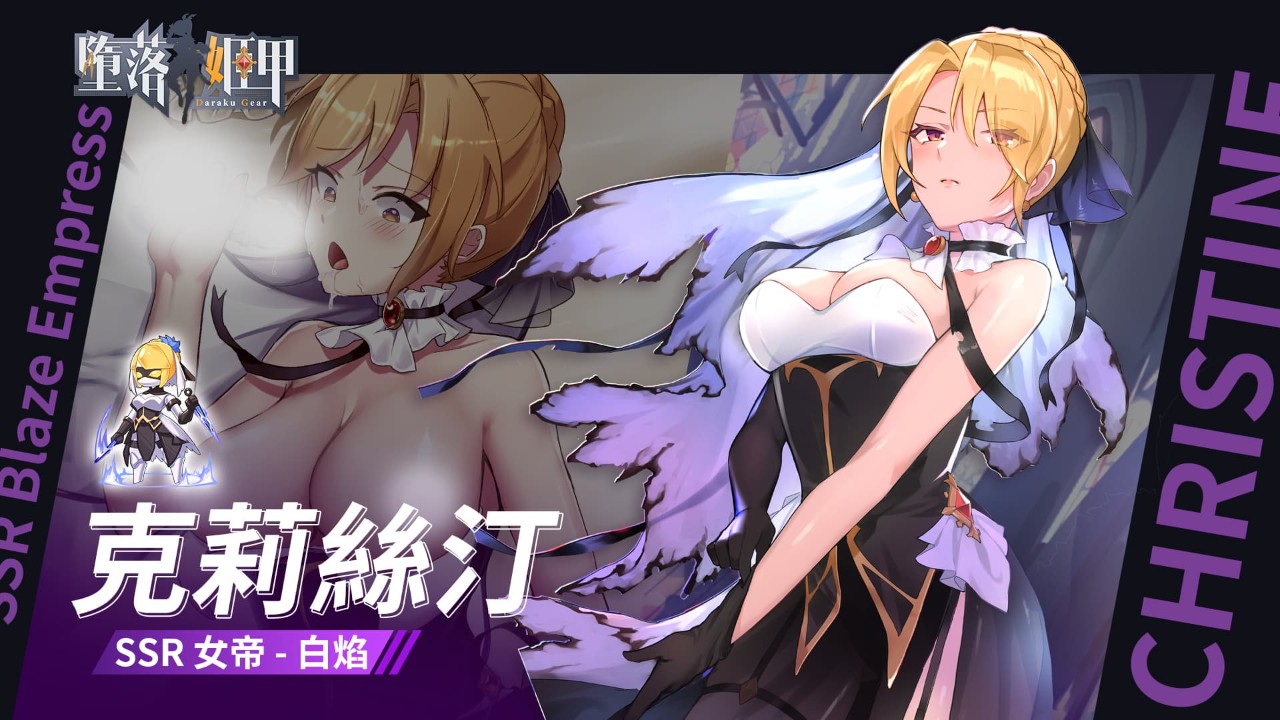 除了有机会将「克莉丝汀 女帝 – 白焰」与「乔丝 女帝 – 蔷薇」纳入后宫,《堕落姬甲》为庆祝上市一週年,将推出全新角色「莎里亚」。