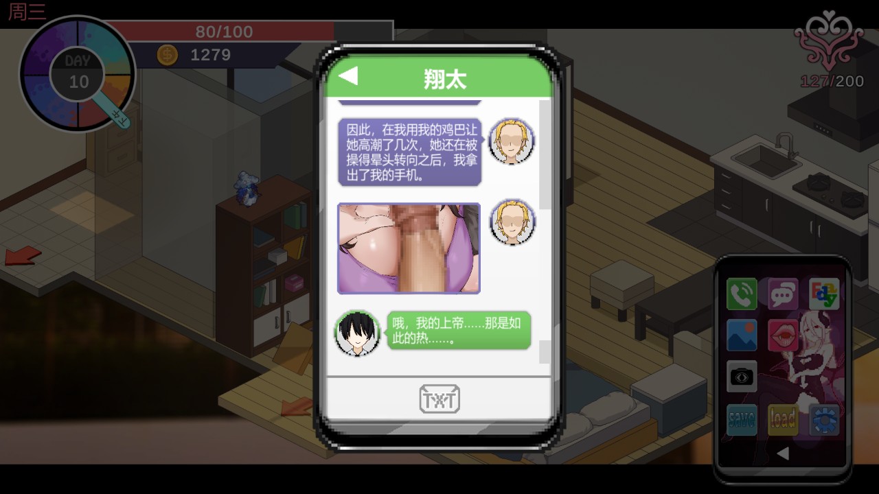 虽说是一般 NTR 作品的套路,但却是以《NTR 传说》表现架构来呈现,加上本作特别设计的聊天讯息介面,藉由龙之介不断传讯息给翔太,更进一步满足了黄毛视角的 NTR 征服感。