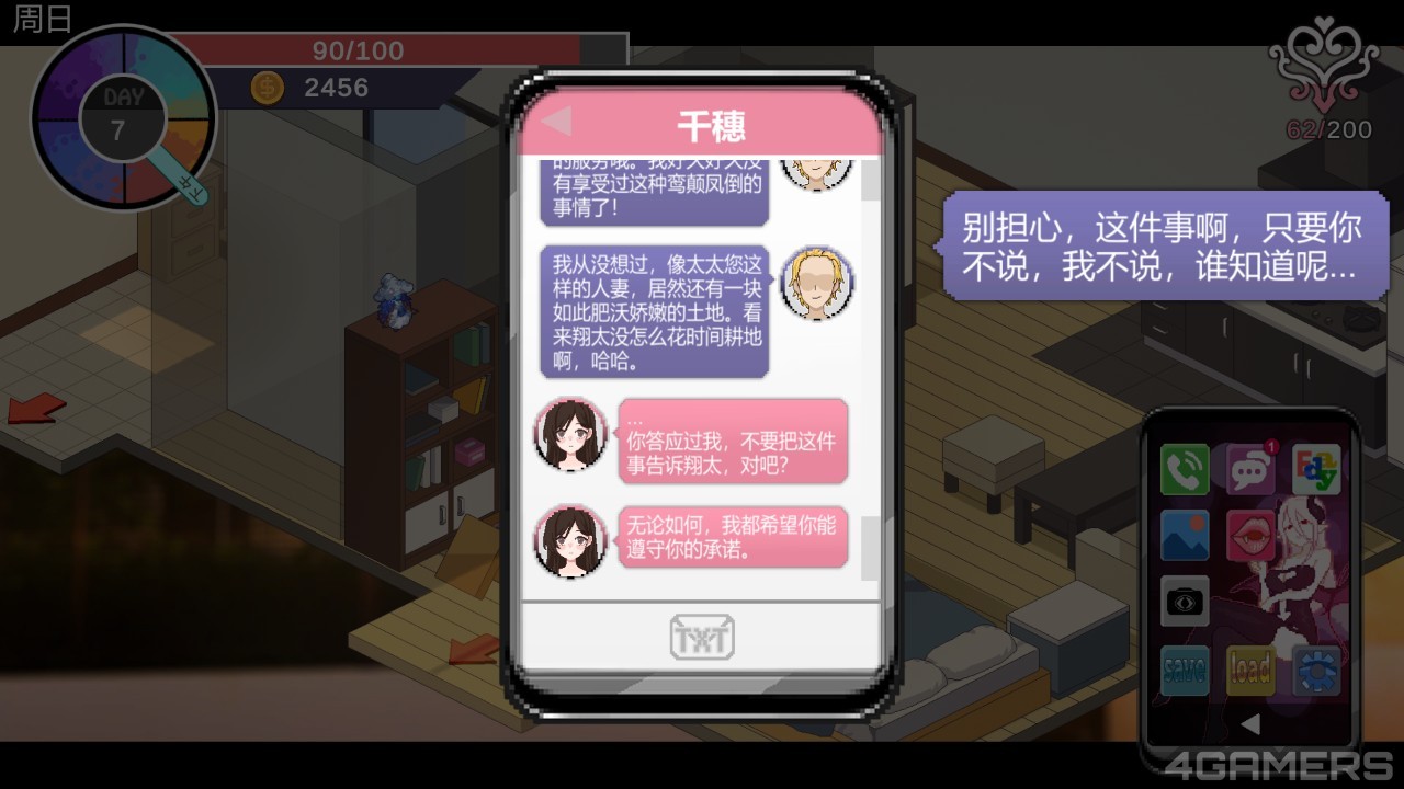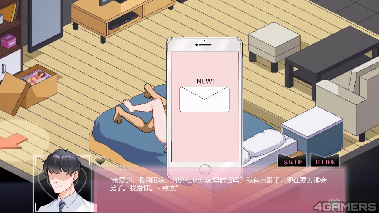 更绝的是,第二阶段开始玩家的目标已经不是沉沦的千穗,而是她的丈夫翔太,玩家的游戏目标改成将翔太,在日常期间维持千穗的关係并不被怀疑,逐步诱使翔太心甘情愿成为绿帽奴。