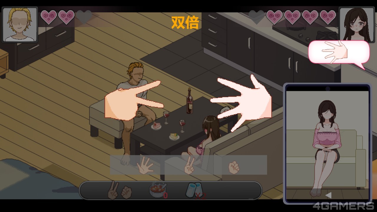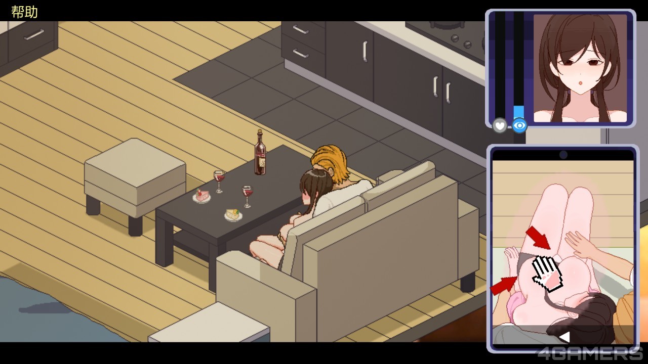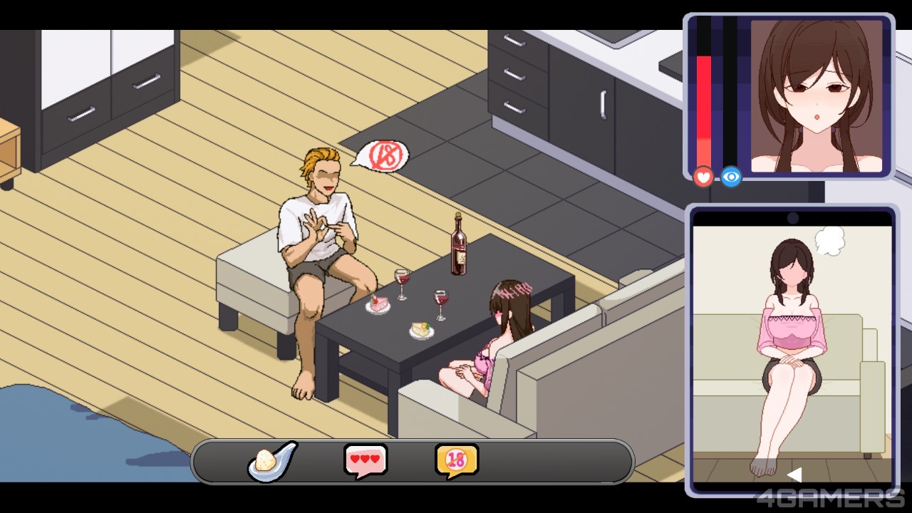 有过亲蜜互动,接下来便是邀请千穗到家中进行下午茶时间,而这个阶段的玩法也非常不同,先是一样需要进行甜言蜜语攻势(包含讲黄色笑话)提升兴奋度,再进入野球拳,只要成攻灌醉千穗即可更进一步进行爱抚。