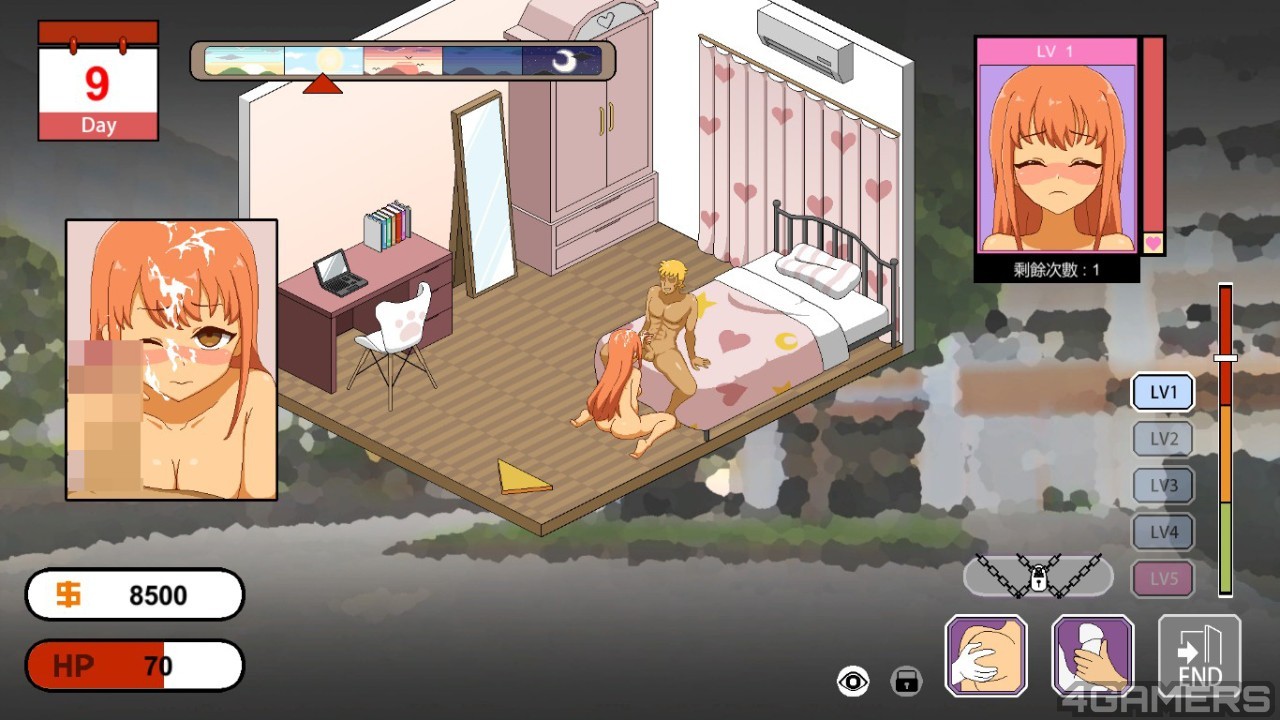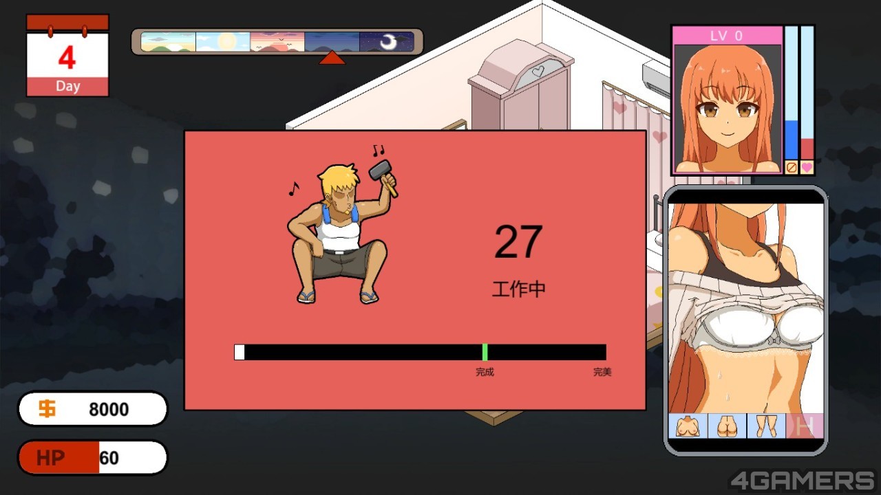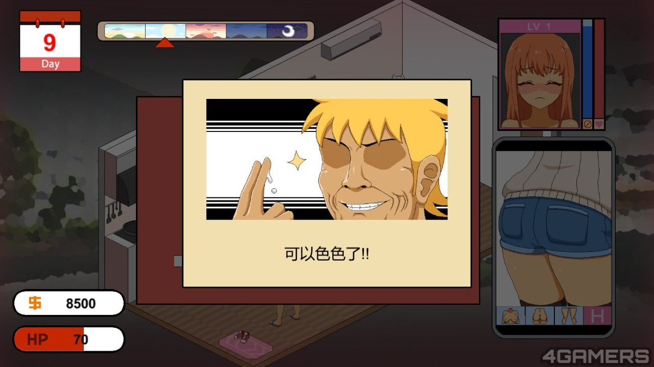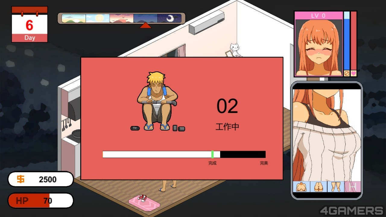 比起《NTR 传说》,这边需要兼顾修水电的工作与攻略女主角会更加忙碌,但只要成功让女主角达到兴奋状态即可提升她的信赖度与淫乱值,进一步解锁色色画面。