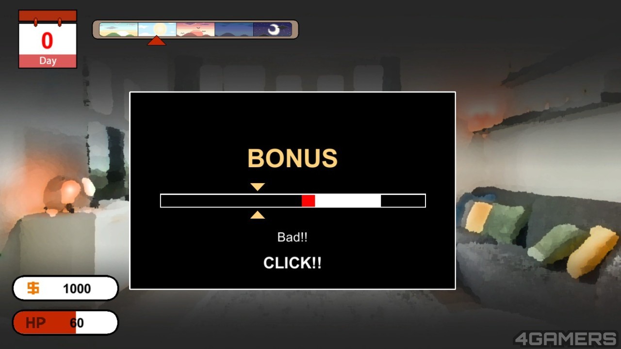工作的过程是在 30 秒内将完成度冲到及格线,每次工作会有 3 次的检定时机,只要滑鼠点到 Nice 区可大幅增加完成度,一般工作至少要按到 1 次 Nice 才有办法到完成及格线。